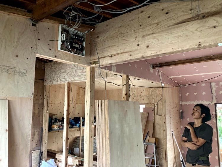 工房の隣には古い平屋があります。 今まで自分たちで少しずつ手を入れながら、倉庫や事務所として使っていました。 しかし、水まわりや、天井を抜いたりすることはハードルが高く、ARTONの山口君に依頼して本格的に改装をすることにしました。